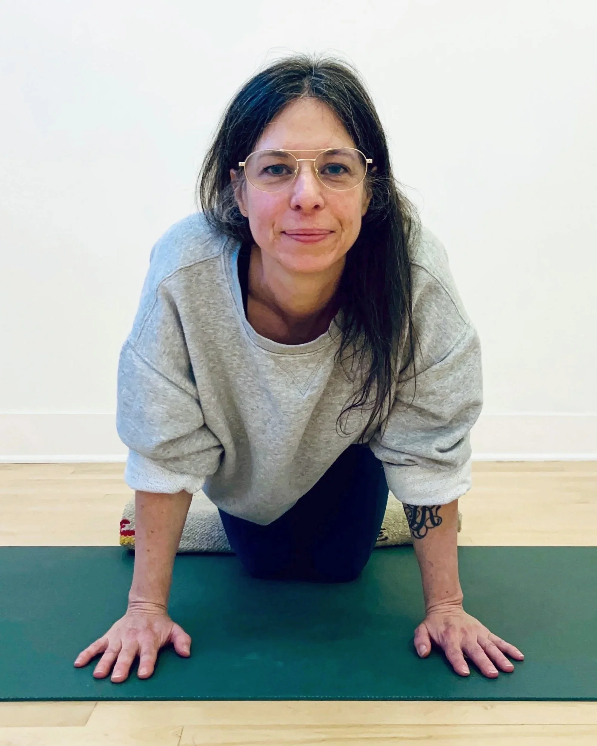 I have had a fluctuating relationship with yoga for about 20 years. Not that any relationship is consistently smooth-sailing, but this past year yoga sat itself firmly at my doorstep. So, I gave in to exploring that. With a gentle nudge from Laela Wilding, friend, mentor, and teacher, I began studying with Meghan Maris in January of 2025. I take the education quite seriously, and I have a dedicated practice that I treat with deep respect…and silliness!”